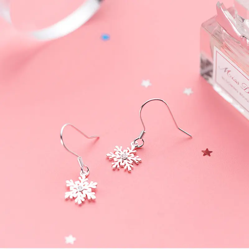 Real 925 Sterling Silver Dazzling Snowflake Dangle Earrings For Women /Girls for Wedding ,Festival Present Jewelry.